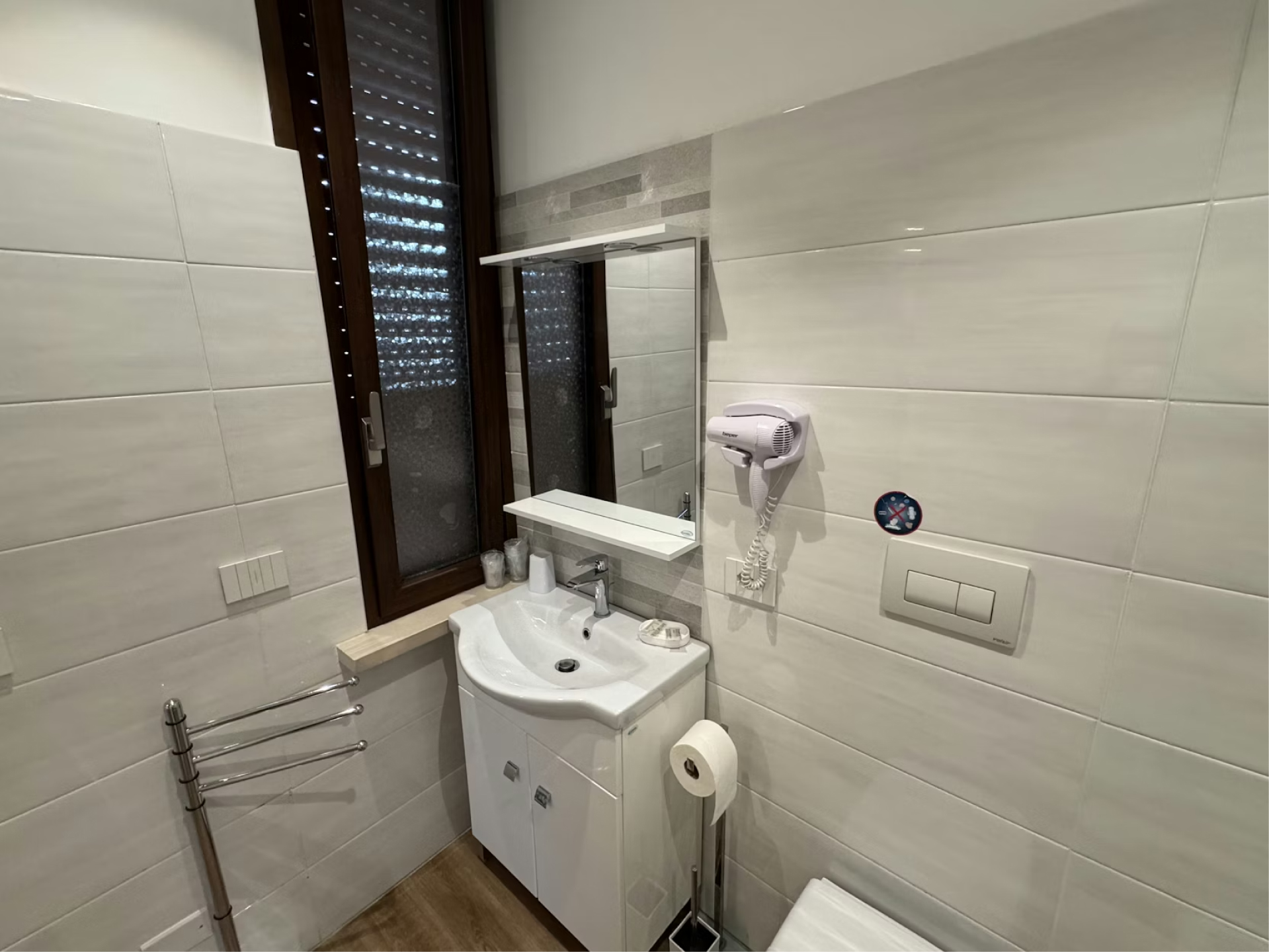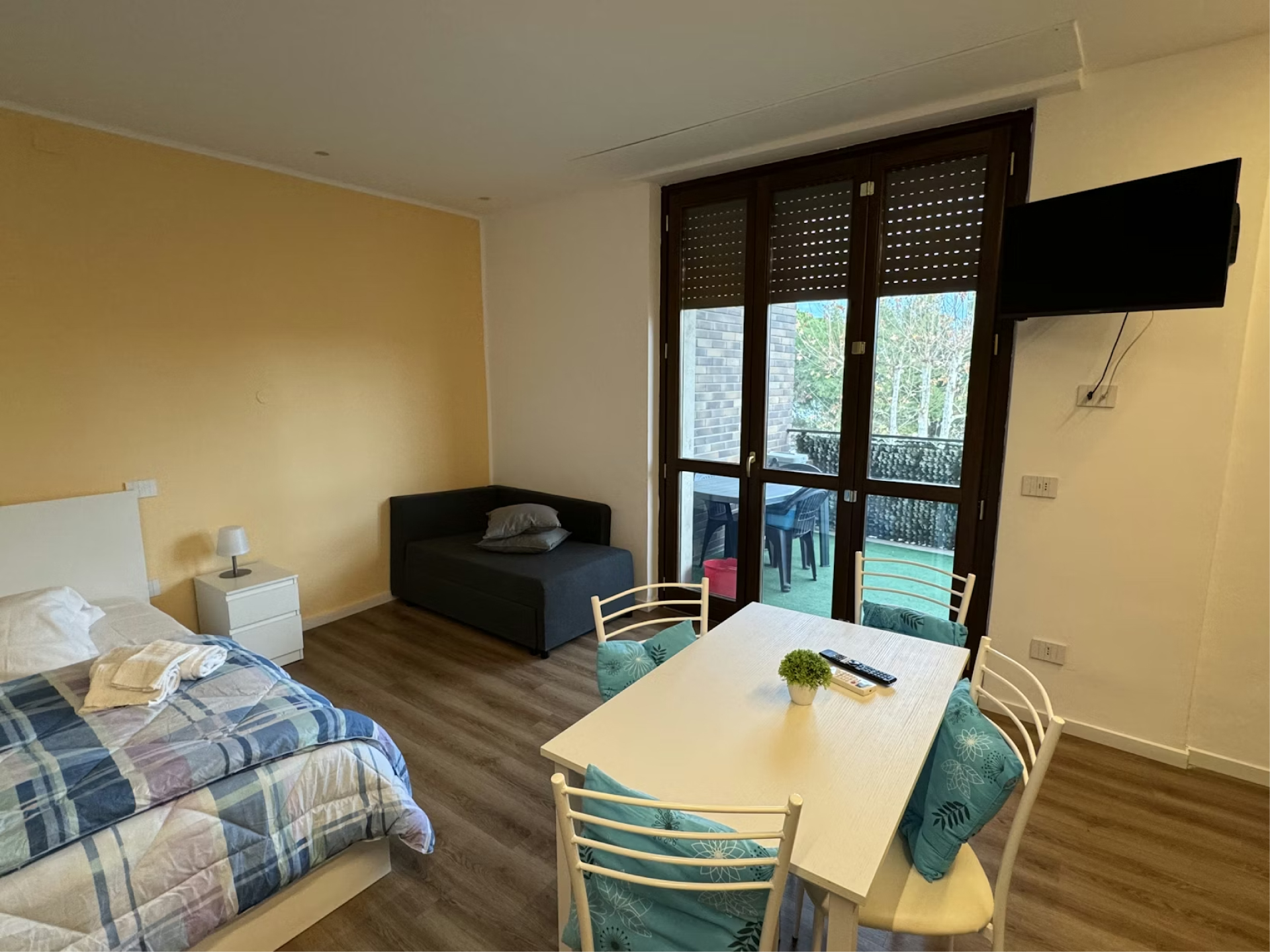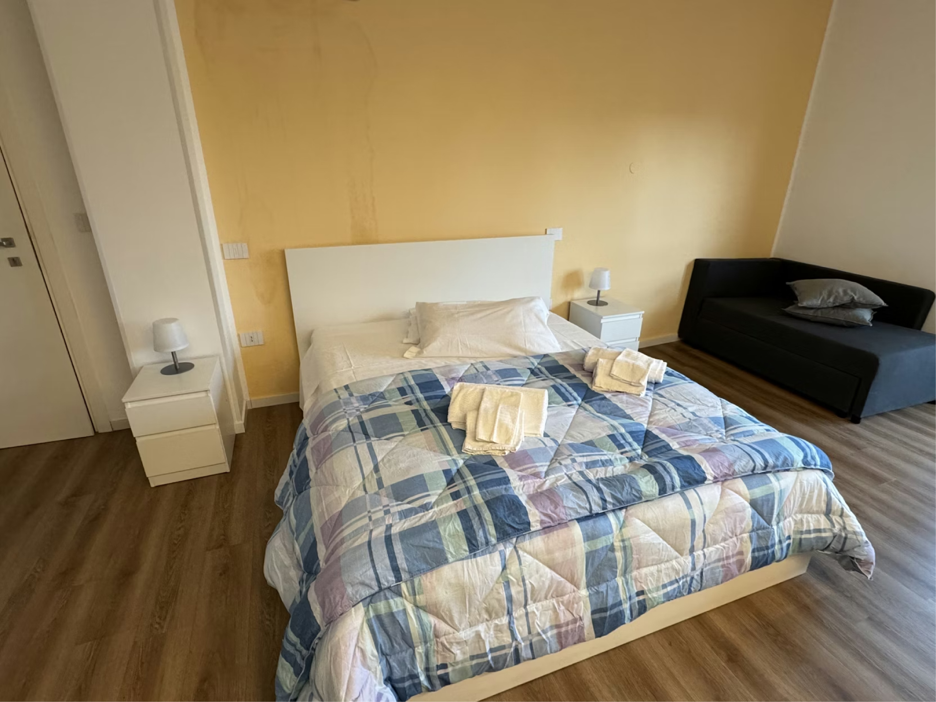 Appartamento con cucina attrezzata, ampia camera matrimoniale climatizzata, lavatrice, balcone e bagno privato con doccia e bidet. Dispone di 1 letto.